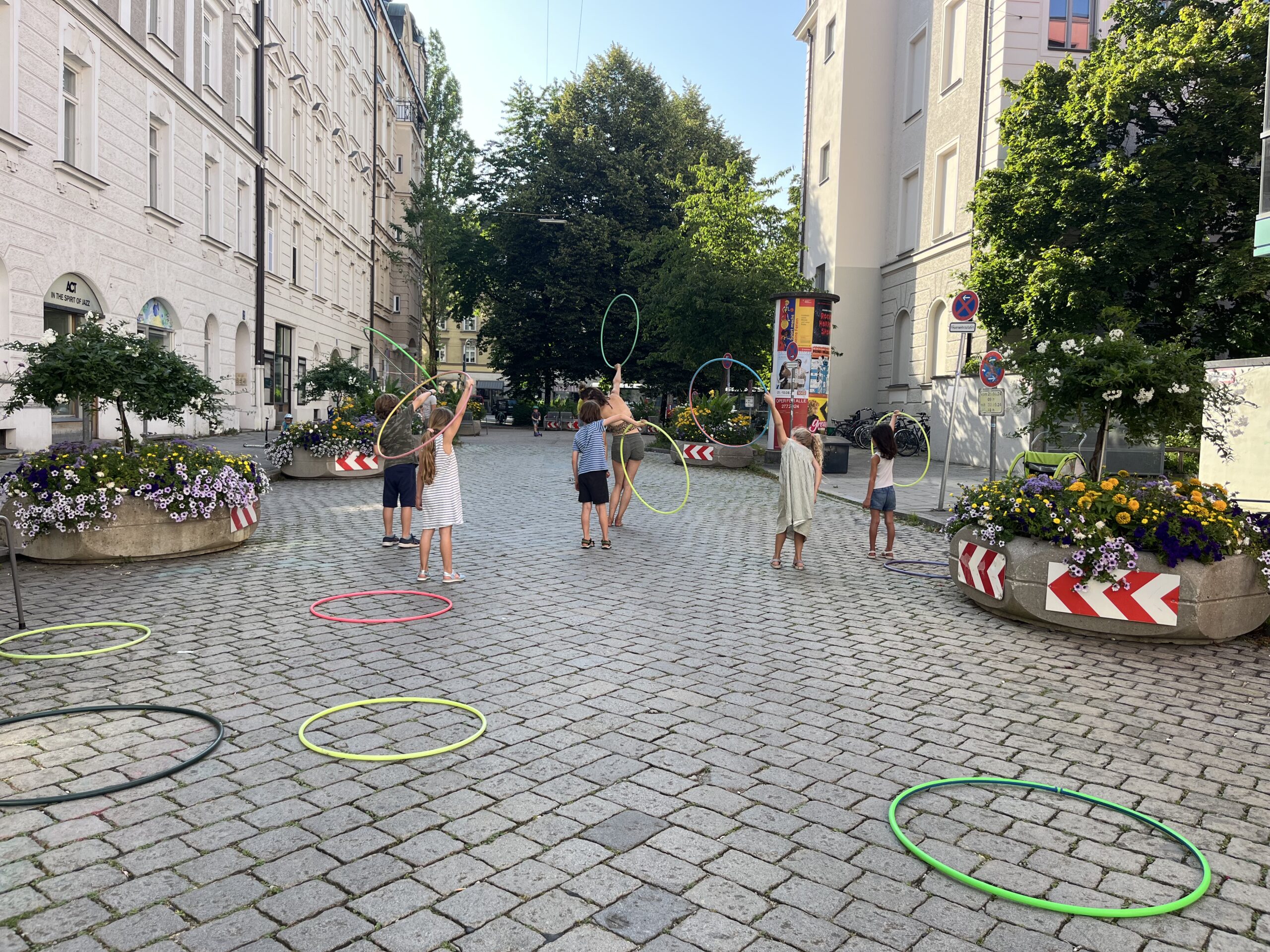 Über die Jahre haben wir den Dialog kontinuierlich mit temporären Aktivierungen erweitert. Erste Eröffnungsfeste zeigten, wie wirkungsvoll es ist, die Nachbarschaft gleich zu Beginn des Sommers zusammenzubringen und die gemeinsame Nutzung anzustoßen. Daraus wurden feste Nachbarschaftsfeste, die mittlerweile zum Start vieler Sommerstraßen dazugehören. Hinzu kamen kreative Bespielungen – etwa Linoldruck, Hula Hoop, Fahrrad-Check oder Silent-Pilates –, mit denen wir neue Perspektiven auf den Straßenraum eröffnen.
